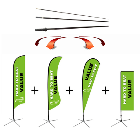 WZRODS 4IN1 깃대: 상어 지느러미 눈물 깃털 직사각형 깃발 스탠드 이벤트 및 프로모션을위한 다목적 광고 디스플레이